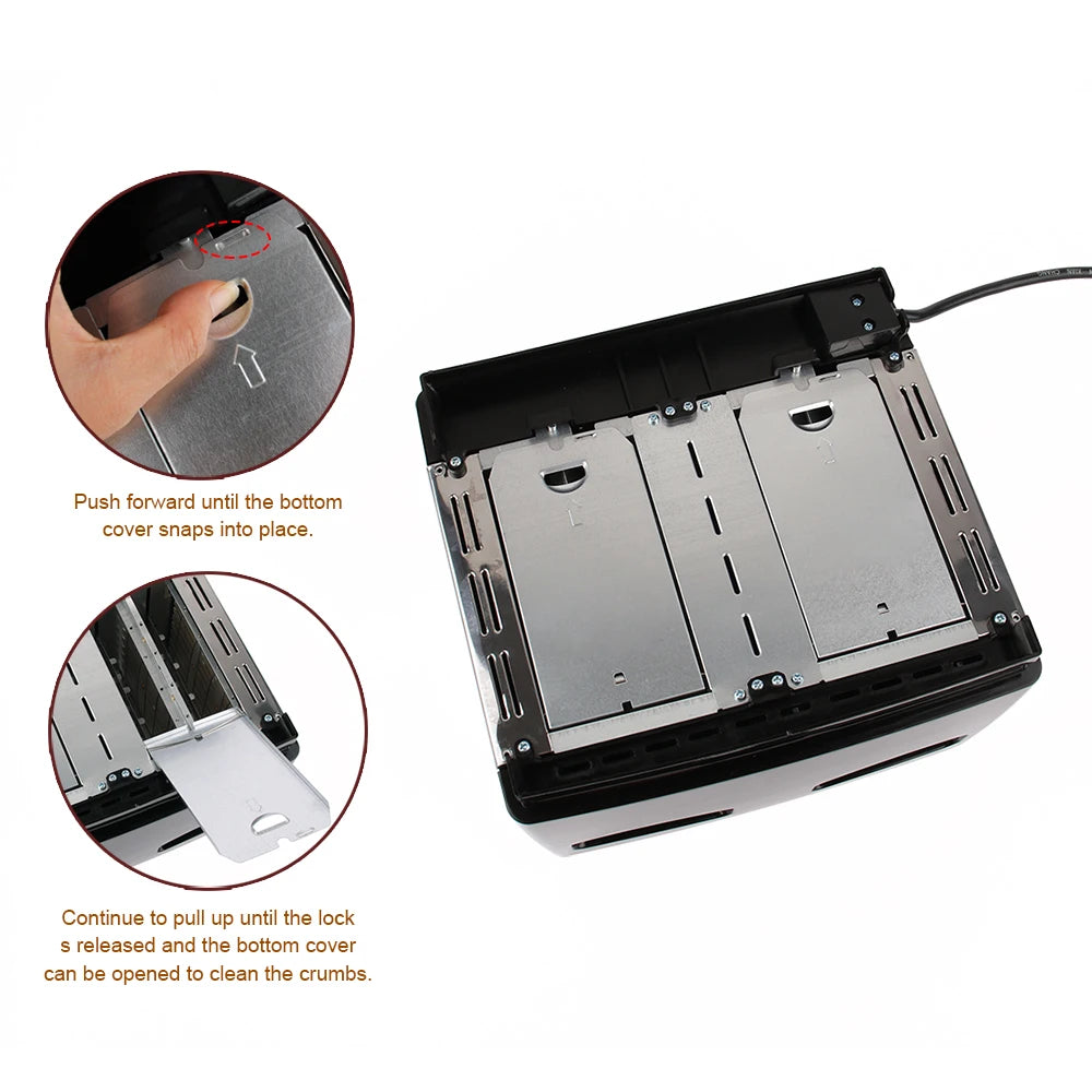 Dieser hochwertige elektrische Toaster bietet Platz für 4 Scheiben Brot und ist ideal für ein schnelles Frühstück. Mit einer Leistung von 1300 W bis 1500 W ermöglicht er eine schnelle und gleichmäßige Erwärmung des Brotes. Er verfügt über verschiedene praktische Funktionen wie eine Auftau- und Aufwärmfunktion, eine variable Bräunungskontrolle und eine automatische Pop-Up-Funktion. Der Toaster ist mit einer herausnehmbaren Krümelschublade ausgestattet und hat 6 Bräunungsstufen für individuelle Toastvorlieben. Mit seinem robusten Kunststoff- und Edelstahlgehäuse ist er langlebig und einfach zu reinigen.